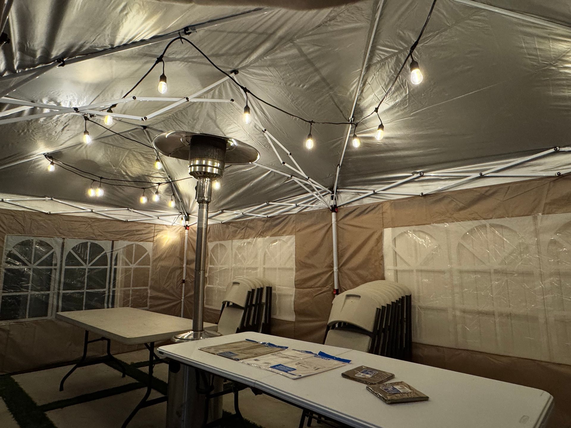 Create a versatile and inviting space for your event with our 10x20 pop-up tent rentals featuring removable walls. Whether you need shelter from the sun or protection from the elements, this tent adapts to your needs. Add a touch of elegance with our included string lights, perfect for evening events like weddings, parties, or outdoor gatherings!